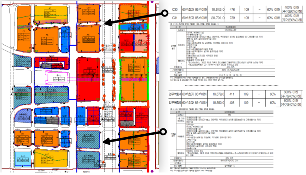 - 업무용지 일부가 주상복합, 업무목합으로 변경