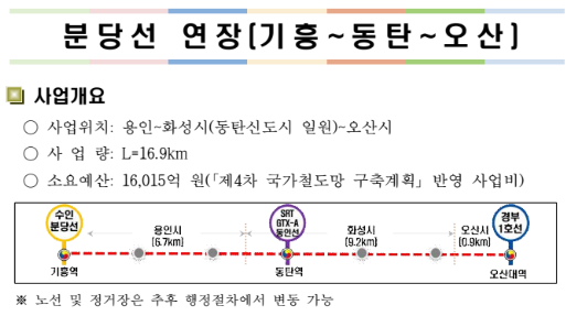 분당선 연장선 시작, 국토부 수용, 기흥~동탄~오산 분당선 연장선, 드디어 본격 추진된다 동탄·오산 주민 ...